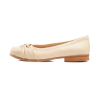 Posee una suela de goma forrada en yute. Como diseño, tiene un moño en su puntera.